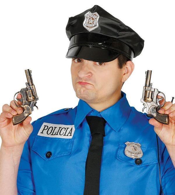 Set composto da due piccole pistole di plastica. Per completare il look del poliziotto o del gangster.