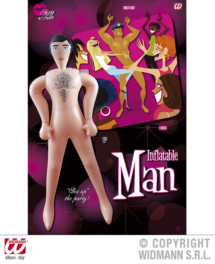 Bambola a forma di uomo, gonfiabile alta circa m 1,50.