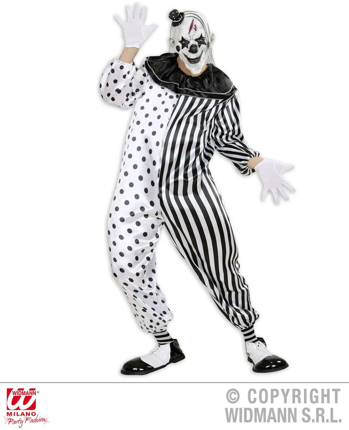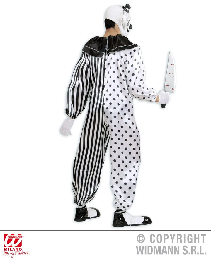 Stupendo costume da Pierrot in versione...Killer! Nella confezione trovi solo il vestito. Puoi completare il look acquistando a parte la maschera, il coltello, i guanti e le scarpe.<br />