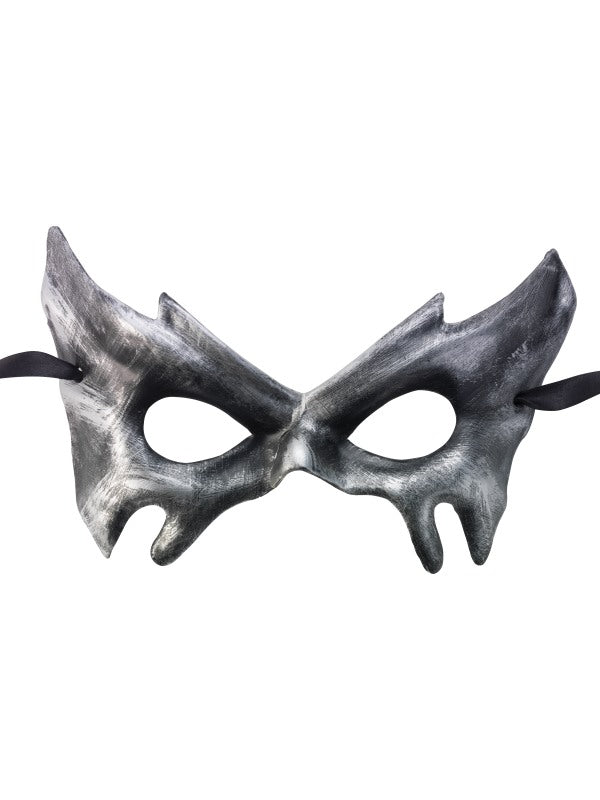 Maschera da fantasma o da cattivissimo nemico dei supereroi! Maschera grigio metallizzato e neroche si adatta perfettamente al volto. Con nastro da legare dietro la testa.