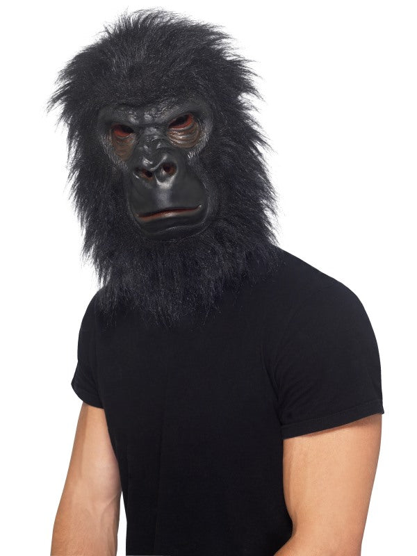 Maschera realistica da gorilla con parrucca e schiuma di lattice. Da adulto.