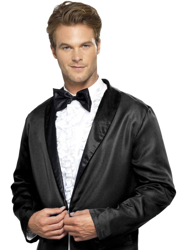 Porzione di camicia (solo la parte anteriore) con ruches e papillon nero. Ideale come coplemento di molti costumi che hanno la giacca.